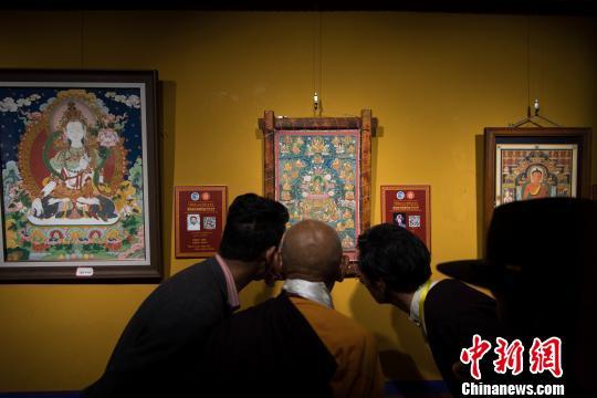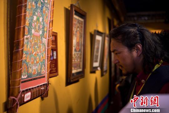 圖為拉薩市民參觀藝術(shù)節(jié)唐卡精品展。 何蓬磊 攝