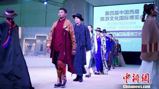 本屆藏博會(huì)展覽還有服飾文化節(jié)展示活動(dòng)。圖為9月8日,模特穿著創(chuàng)新的藏裝走T臺(tái)。 江飛波 攝