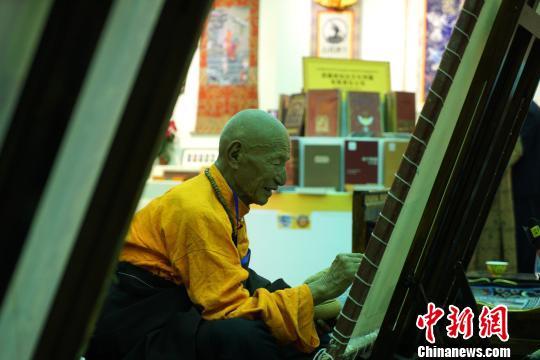第四屆藏博會(huì)二號(hào)展館以“守護(hù)第三極”為主題,集中展示雪域特色文化等。圖為9月8日,中國(guó)國(guó)家級(jí)非遺傳承人演示藏式唐卡創(chuàng)作過(guò)程。 江飛波 攝