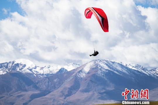 圖為滑翔傘運(yùn)動(dòng)員在羊八井高山訓(xùn)練基地附近進(jìn)行滑翔表演。 何蓬磊 攝