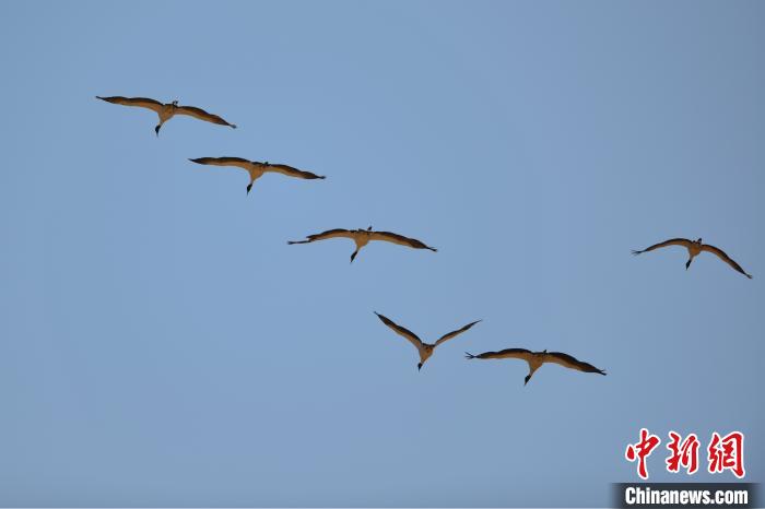 記者本月15日至16日從西藏拉薩市林周縣澎波河流域觀察了解到,中國(guó)國(guó)家一級(jí)保護(hù)動(dòng)物黑頸鶴已大量遷徙至該區(qū)域越冬。