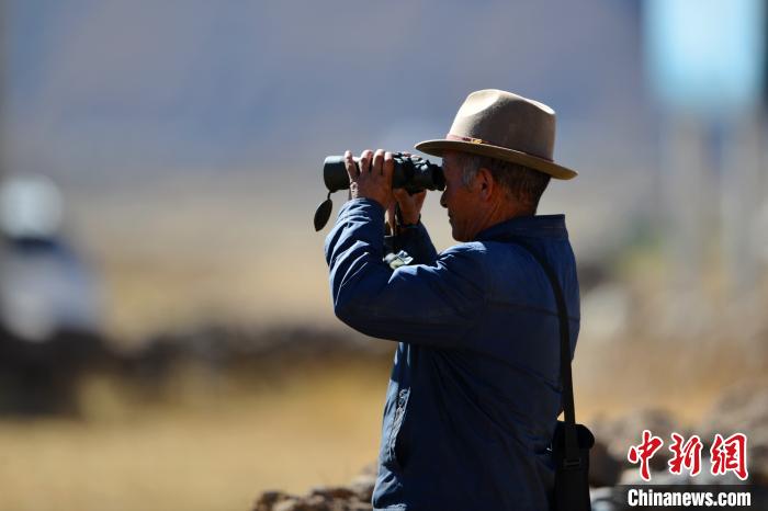 圖為西藏林周縣黑頸鶴巡護(hù)員旦增,每年入冬后他要負(fù)責(zé)轄區(qū)黑頸鶴安全過(guò)冬。 江飛波 攝