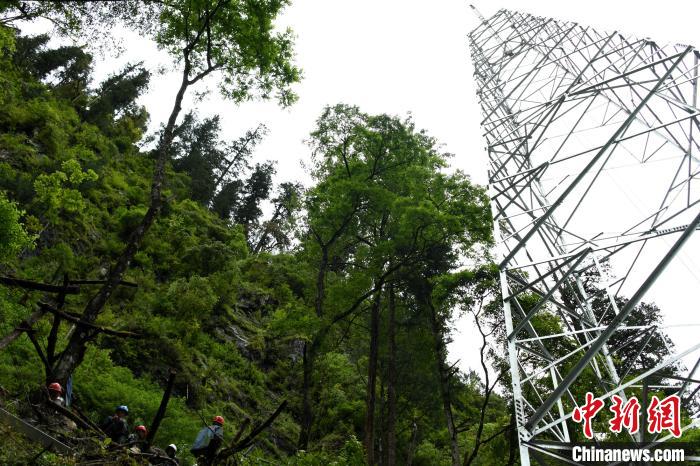 圖為圖為西藏林芝市原始森林中“三區(qū)三州”電網(wǎng)建設(shè)現(xiàn)場。 李東淮 攝