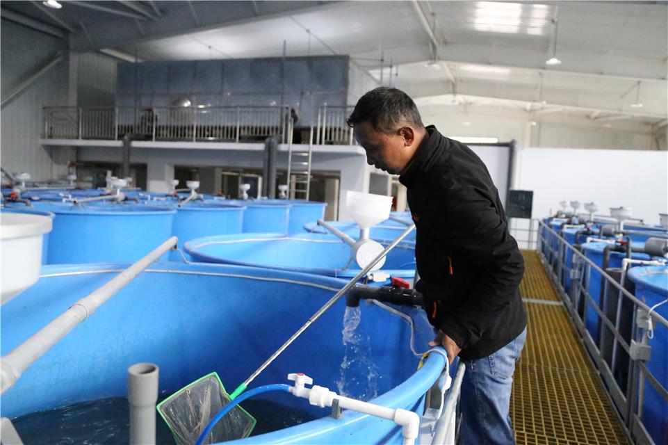 旦增拉杰正在管理亞?wèn)|鮭魚(yú)魚(yú)苗 賀建明 攝