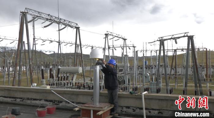 西藏那曲110千伏變電站北斗基準(zhǔn)站建設(shè)現(xiàn)場。國網(wǎng)西藏電力有限公司 供圖