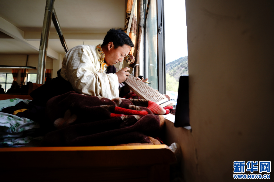 在西藏昌都市江達縣波羅鄉(xiāng)木松民族手工藝有限責(zé)任公司,波羅鄉(xiāng)村民白瑪加村在制作木刻(5月1日攝)。白瑪加村2017年開始學(xué)習(xí)波羅木刻,如今已經(jīng)出師,成為一個熟練的木刻藝人。在公司里,白瑪加村一個月能制作6塊木刻作品,每個月有4000多元的收入。新華社記者詹彥 攝