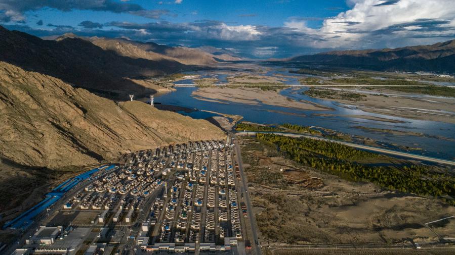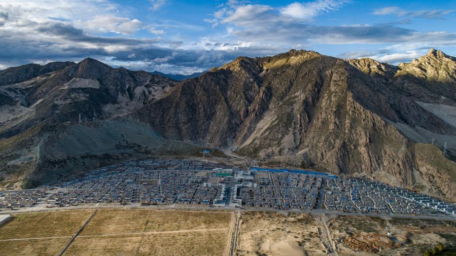 位于山南市貢嘎縣的森布日搬遷安置點(diǎn)(2020年9月24日攝,無人機(jī)照片)。新華社記者 孫非 攝