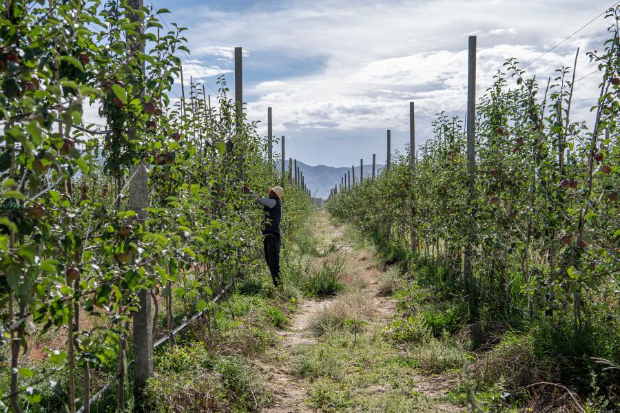 山南市貢嘎縣森布日搬遷安置點(diǎn)千畝矮化蘋果種植園(2020年8月24日攝)。這是山南市森布日極高海拔生態(tài)搬遷點(diǎn)經(jīng)濟(jì)林種植基地建設(shè)項(xiàng)目的一部分,果園收入的65%將作為分紅交給搬遷群眾。新華社記者 孫非 攝