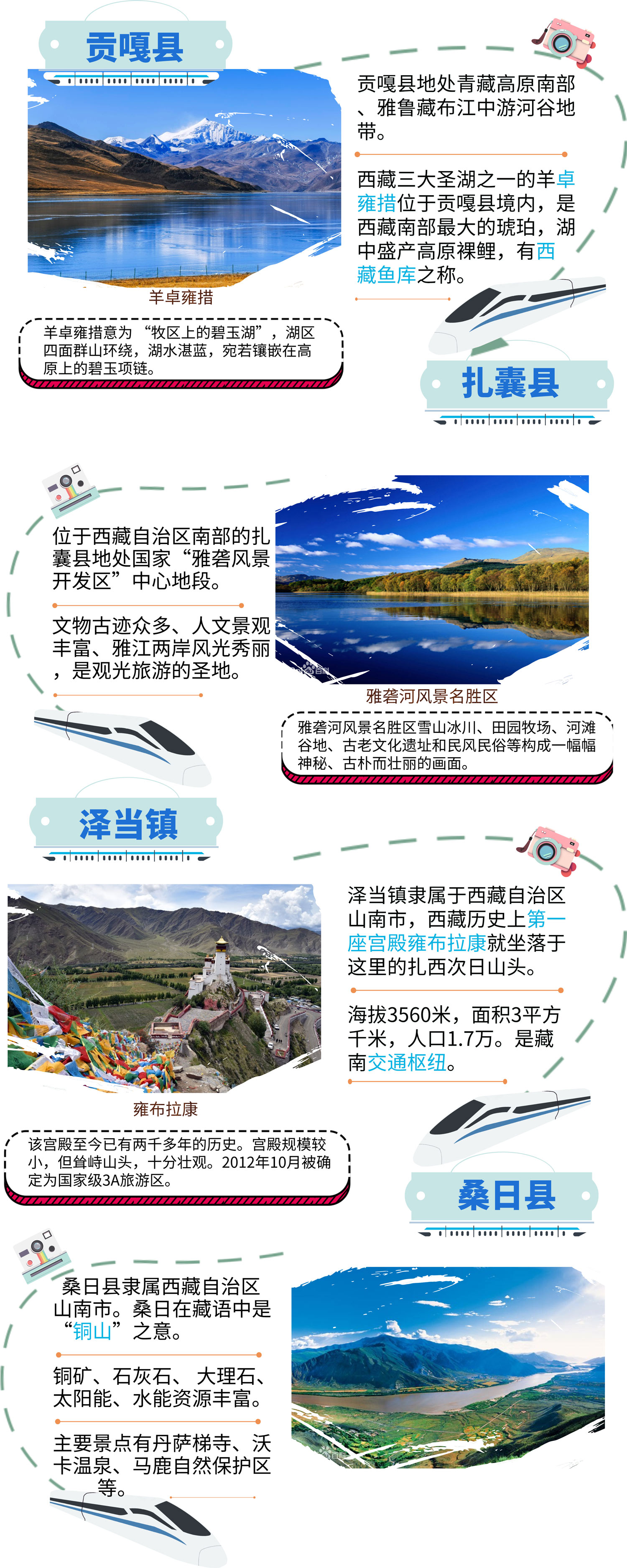 川藏鐵路拉薩至林芝段線路,沿途跨過(guò)雅魯藏布江,向東經(jīng)過(guò)貢嘎、扎囊、桑日、加查、朗縣、米林至林芝,一路都是美景。