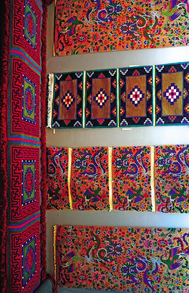 西藏非遺博物館內展覽的藏毯。