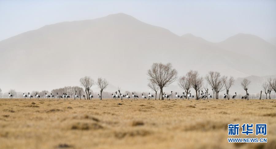 這是棲息在雅魯藏布江流域的黑頸鶴(2020年3月11日攝)。新華社記者 晉美多吉 攝