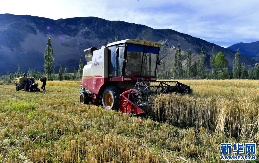西藏山南市扎囊縣松卡居委會的居民在收割青稞(2019年8月29日攝)。新華社記者 張汝鋒 攝