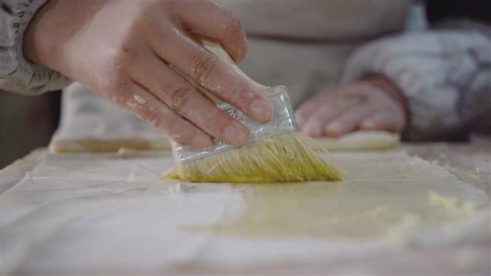 尼珍店內(nèi)共有7種類型的卡塞與布魯,她每天要工作到晚上9點半。“1月初,我們就開始制作售賣卡塞,今年生意還不錯,店員大部分是放假的大學(xué)生,每年這個時候,他們都會來店里工作。”尼珍笑道。