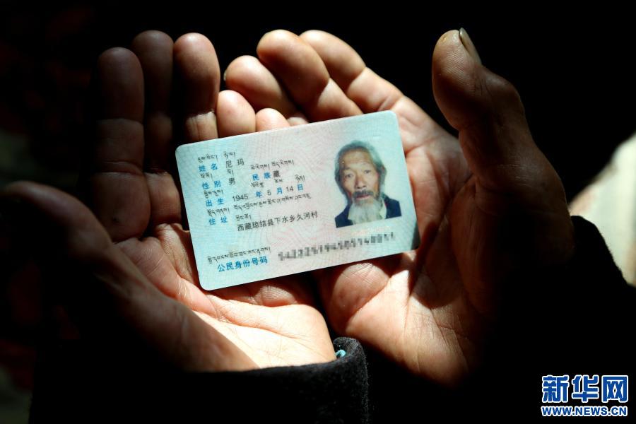 這是3月19日拍攝的尼瑪老人的身份證。新華社記者 阿倫 攝