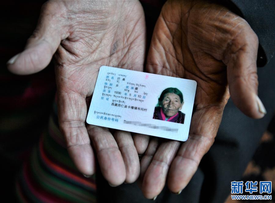 巴桑展示身份證(2月27日攝)。新華社記者 孫非 攝