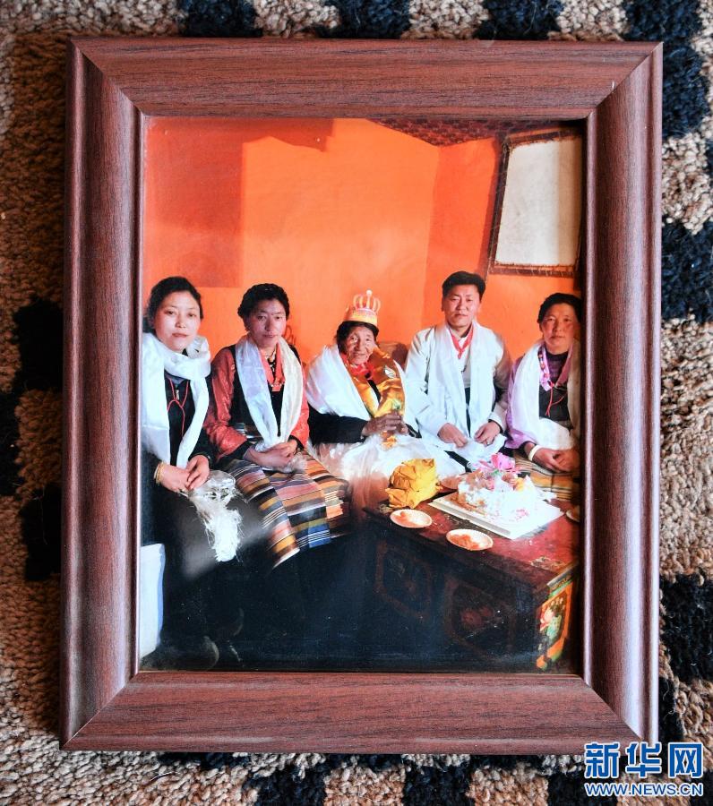 這是家里懸掛的巴桑老人過(guò)生日的照片(2月27日攝)。新華社記者 孫非 攝
