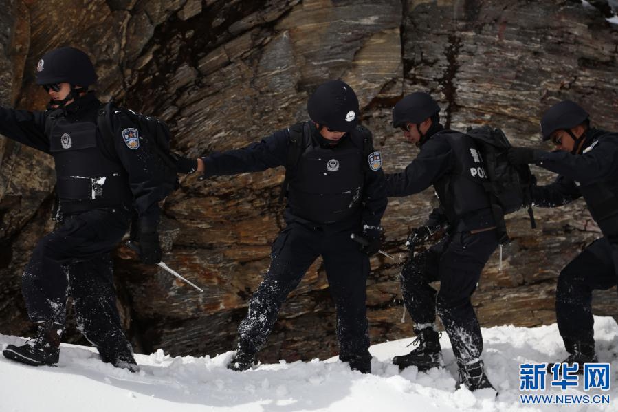 楊帆等5位警察正在乃堆拉巡邏(2021年3月19日攝) 新華社發(fā) 張雨強攝