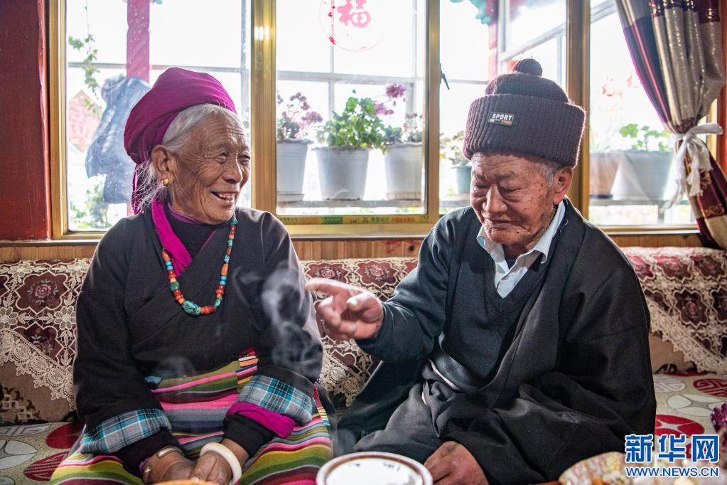 昂旺尼瑪和妻子在家中聊天(2月18日攝)。新華社記者 孫非 攝