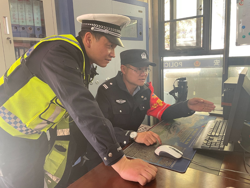 交警和警務站民警通過視頻巡查路面車輛通行情況。