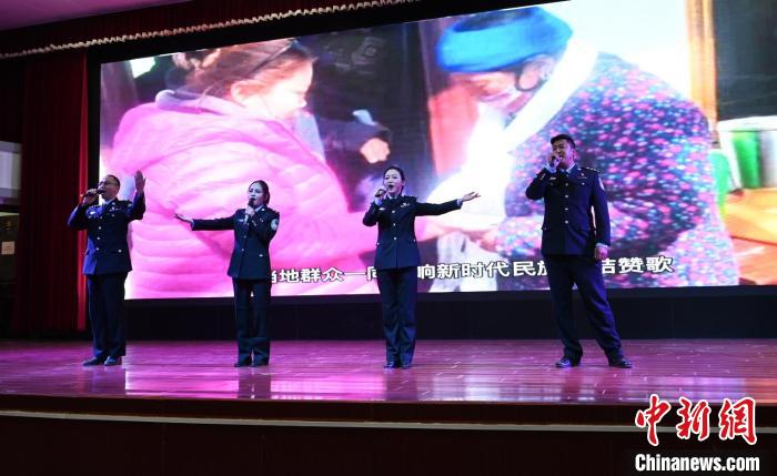 圖為儀式上,民警們表演文藝節(jié)目。