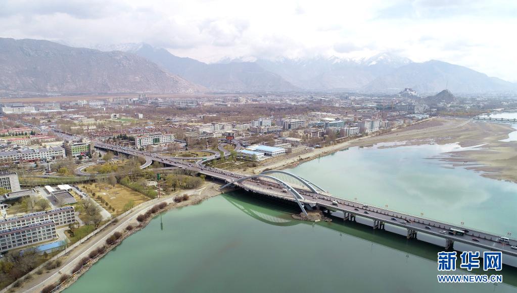 這是橫跨在拉薩河上的拉薩市區(qū)公路(2019年4月3日攝,無人機(jī)照片)。新華社記者 晉美多吉 攝