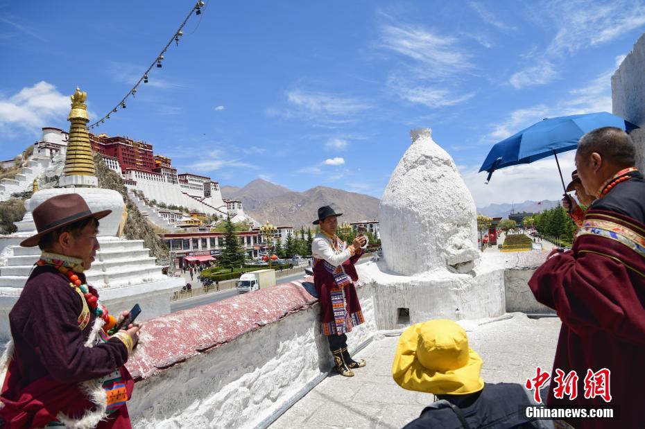 西藏官方發(fā)布數(shù)據(jù)顯示,2021年一季度,西藏接待國內(nèi)外游客171萬人次,同比增長2.4倍,實現(xiàn)旅游收入13.78億元人民幣,增長3.1倍。“五一”假期將至,在拉薩布達拉宮、八廓街等地可以看到,身著藏族傳統(tǒng)服飾拍照留念的游客絡(luò)繹不絕,西藏旅游預(yù)計將迎來小高潮。圖為4月29日,藍天白云映襯下的布達拉宮。中新社發(fā) 貢嘎來松 攝