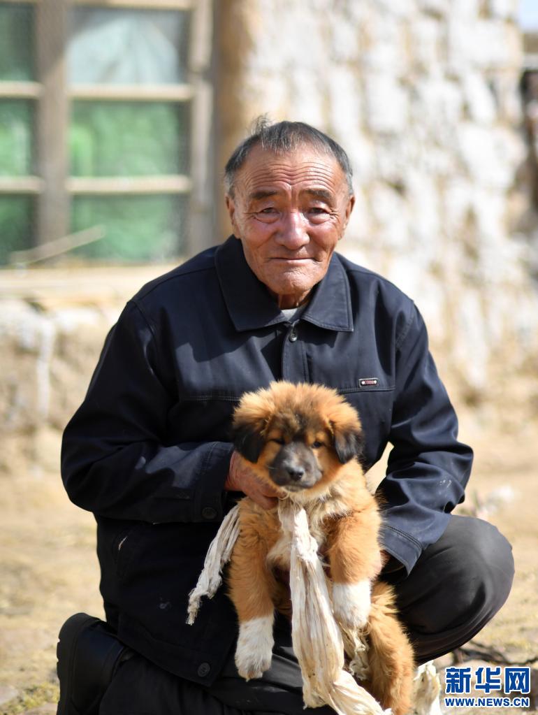 旦達(dá)和他家的小狗(4月16日攝)。新華社記者 覺(jué)果 攝
