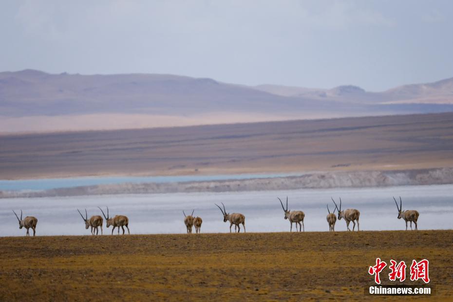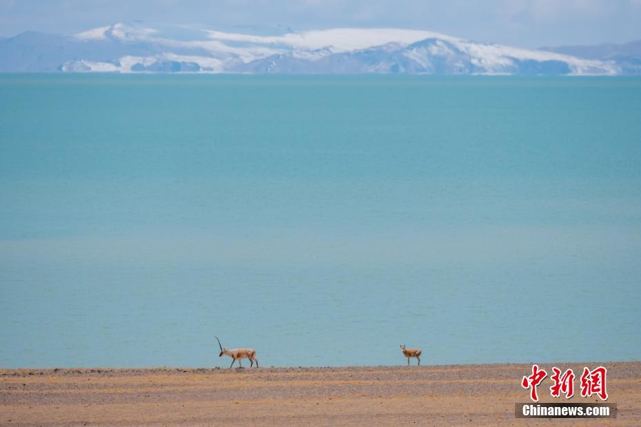 5月2日,西藏羌塘草原色林錯(cuò)湖邊的藏羚羊。