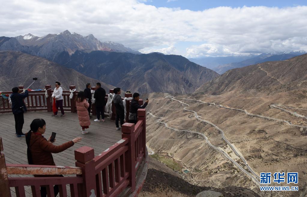 游客在觀景平臺(tái)眺望壯觀的怒江72道拐(5月3日攝)。新華社記者 陳燮 攝