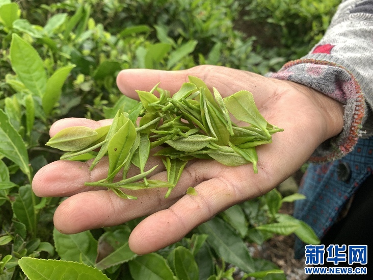 圖為剛采摘的茶葉(5月18日攝)。新華網(wǎng) 雪珍 攝