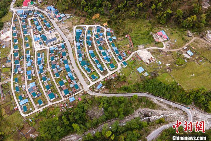圖為5月16日,西藏墨脫公路上的達木珞巴民族鄉(xiāng)貢日村景象,該村此前為舊墨脫公路物資轉(zhuǎn)運點,被稱為“80K”。(無人機照片) 中新社記者 江飛波 攝