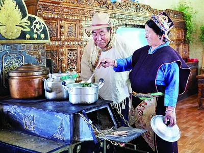 推開格桑曲珍家的院門,迎面映入眼簾的是坐北朝南、鑲嵌六扇大落地窗的藏式二層紅頂小樓,收拾得干凈整潔的院落透露出主人一家的勤勞。院子西邊的獨(dú)立衛(wèi)生間里,白底黃花的瓷磚鋪滿地面和墻面,太陽(yáng)能熱水器、上下水衛(wèi)浴設(shè)施一應(yīng)俱全。院子?xùn)|南角上占地十余平方米的廚房里,配齊了現(xiàn)代化的抽油煙機(jī)和電子灶具。