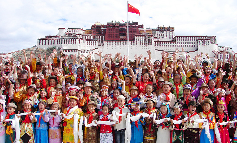 圖為拉薩市第一小學(xué)60年校慶時,全校學(xué)生盛裝在布達拉宮廣場合影留念。(資料圖片) 記者 旦增西旦 攝
