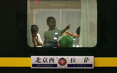 2006年7月1日上午,世界海拔最高的鐵路——青藏鐵路——全線正式通車,通車儀式在青海格爾木和西藏拉薩兩地同時(shí)舉行。