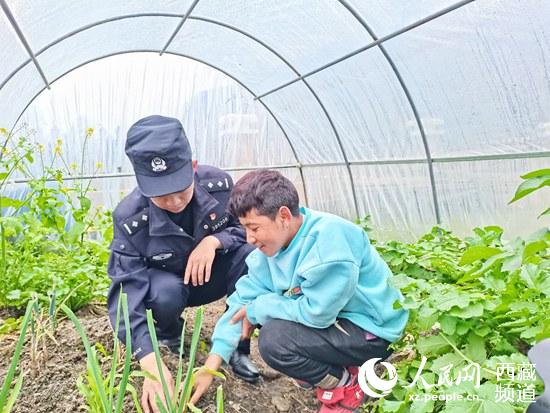 “他對(duì)我們可好了?!闭f(shuō)起這位警察叔叔,旺姆的哥哥巴旦一臉笑容。巴旦想在自家院里種菜,種植專業(yè)出身的沈朋二話不說(shuō)就幫他們把大棚建了起來(lái),還手把手教種植知識(shí)。