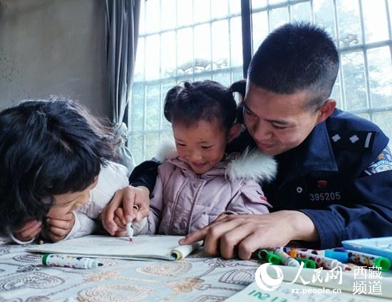 旺姆一家6口,是在2019年搬遷到這里的。初來(lái)乍到,他們?cè)谏钌隙嗌儆行┎涣?xí)慣。了解到這一情況后,沈朋和其他民警開(kāi)始了上門服務(wù)工作。從此,旺姆和哥哥姐姐有了穿不完的衣服鞋子,也有了一個(gè)貼心輔導(dǎo)功課的警察叔叔。