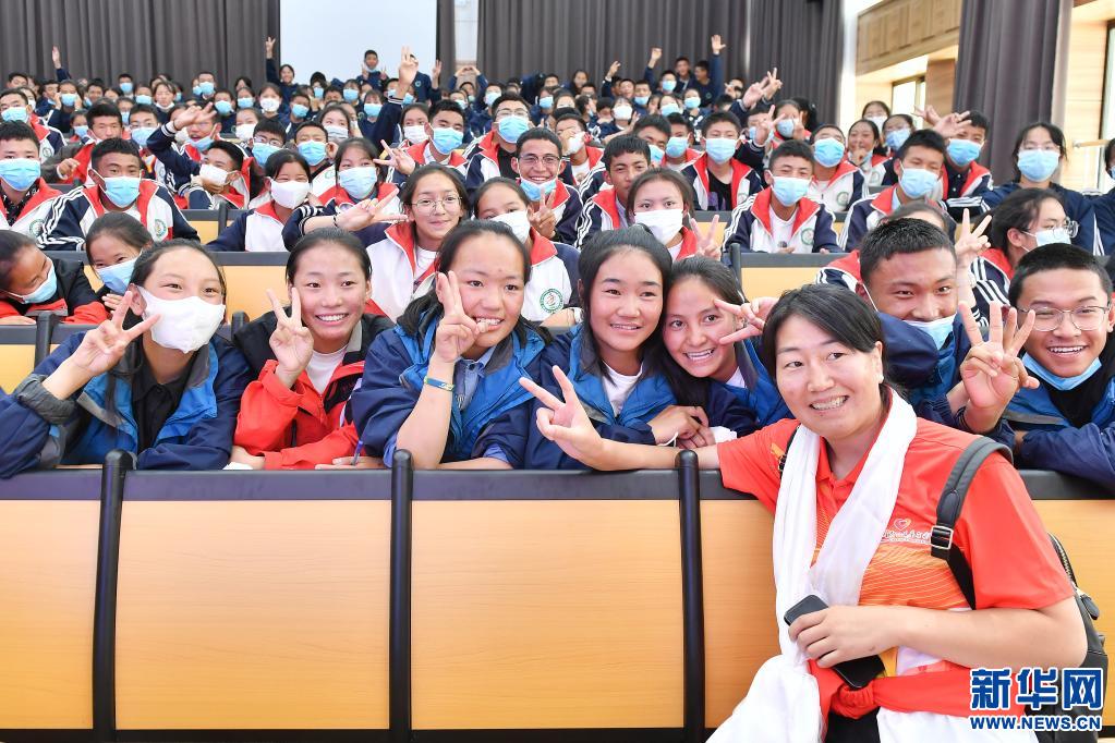 當(dāng)日,高敏攜西藏和平解放以來(lái)首個(gè)競(jìng)技體育世界冠軍、摔跤運(yùn)動(dòng)員西洛卓瑪和成功登頂七大洲最高峰并徒步到達(dá)南北極點(diǎn)的西藏登山運(yùn)動(dòng)員德慶歐珠走進(jìn)拉薩市阿里高級(jí)中學(xué)。該校在校學(xué)生均來(lái)自距拉薩超過(guò)1000公里的阿里地區(qū)。由于當(dāng)?shù)貧夂驐l件惡劣,交通不便,學(xué)校遷往拉薩,讓許多高海拔偏遠(yuǎn)地區(qū)的學(xué)生享受到了更優(yōu)質(zhì)的教育條件。