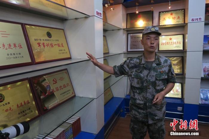 近日,中新社記者隨采訪團(tuán)重走上世紀(jì)50年代中國(guó)人民解放軍進(jìn)藏先遣連的入藏路線。圖為南疆軍區(qū)某合成團(tuán)1連榮譽(yù)室,雕像是進(jìn)藏先遣英雄連總指揮李狄三。 中新社記者 楊程晨 攝