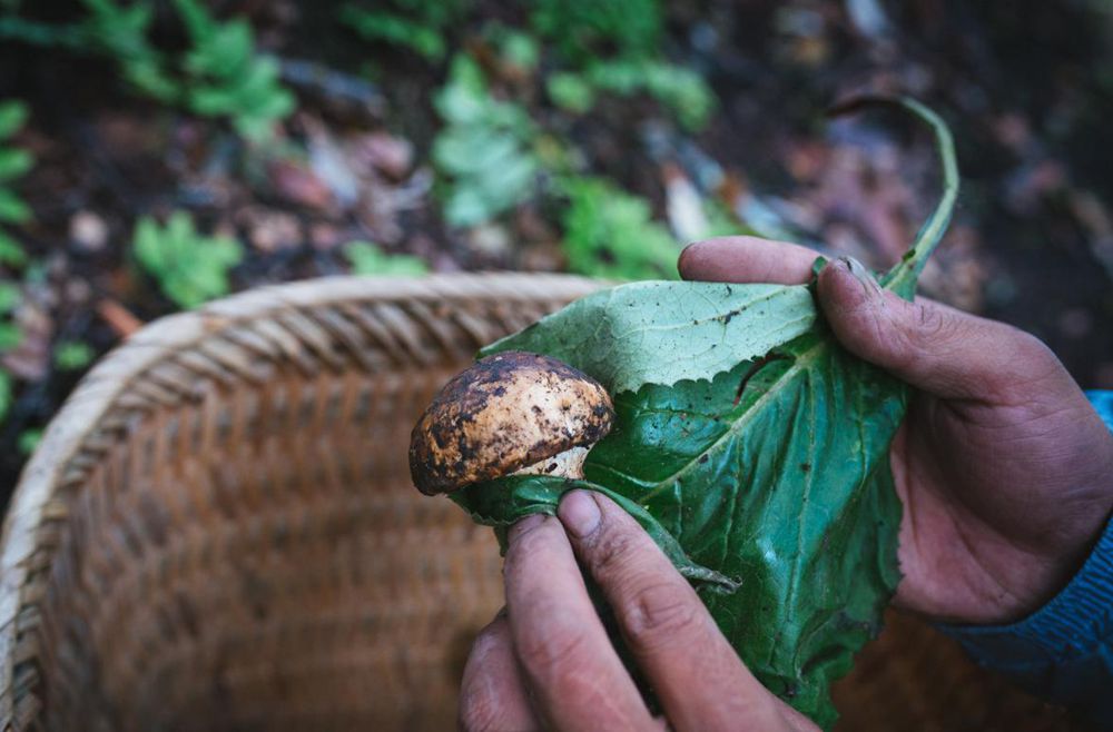 用寬大的葉子包好松茸保持其鮮美。圖片由林芝市松茸協(xié)會(huì)提供