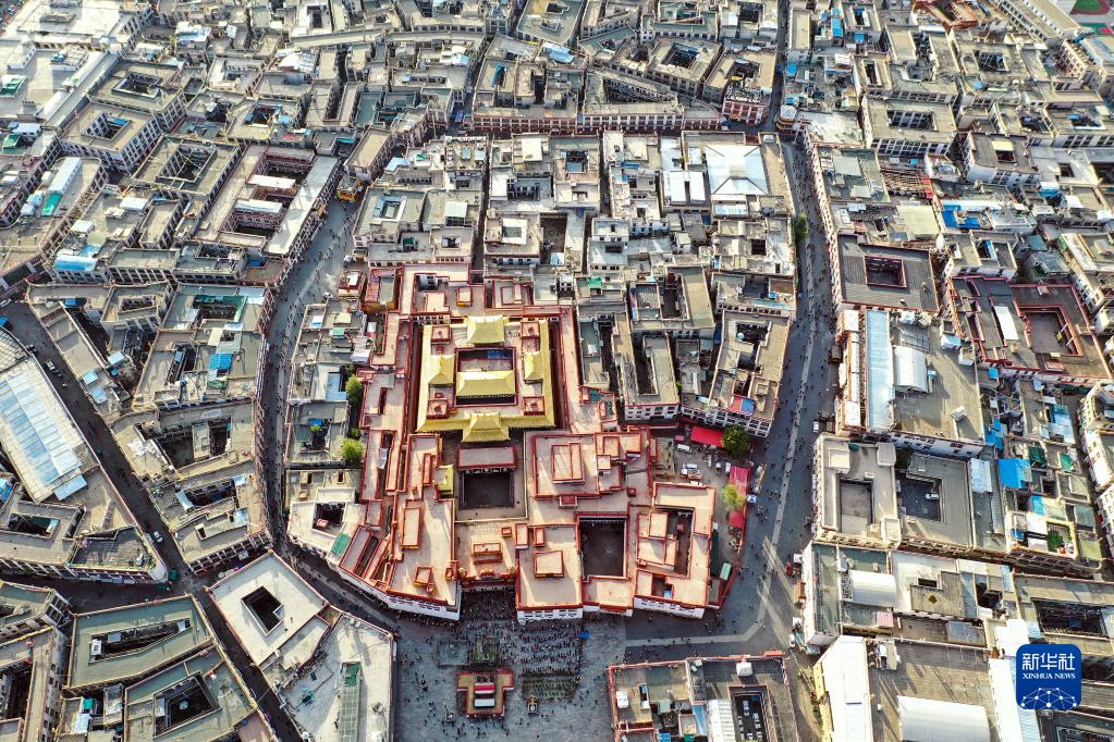 鳥瞰拉薩八廓街(2019年8月10日攝,無人機照片)。新華社記者 普布扎西 攝