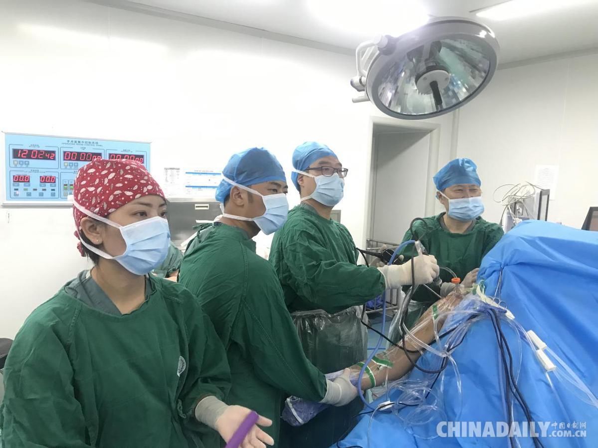 程序醫(yī)生和西藏自治區(qū)人民醫(yī)院醫(yī)生一道開(kāi)展肩袖撕裂鏡下手術(shù)。中國(guó)日?qǐng)?bào)達(dá)窮攝
