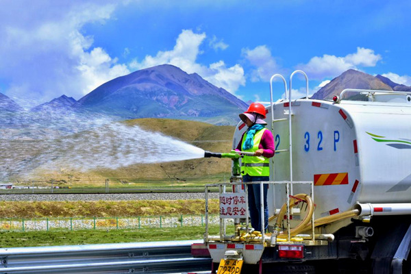 在惡劣條件下,是如何打造的?中國中鐵那羊高速四分部項目經(jīng)理陳永豐介紹:“都是在草甸恢復基礎(chǔ)上進行的。剝離的草甸堆放在沿線,覆以遮陽網(wǎng),定時澆水養(yǎng)護。路基建好后,將其復植至邊坡等地。打好基礎(chǔ)后,選用了更適應高原環(huán)境的鄉(xiāng)土草(花)種。”