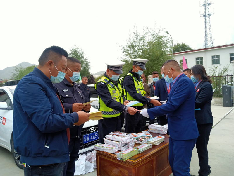 網(wǎng)約車、出租車等營(yíng)運(yùn)車輛是城市公共交通的重要組成部分,為進(jìn)一步強(qiáng)化道路交通安全宣傳,提高廣大駕駛員的安全意識(shí),有效預(yù)防和減少道路交通事故的發(fā)生,9月1日上午,拉薩市公安局交警支隊(duì)來到拉薩柳梧汽車站對(duì)轄區(qū)內(nèi)的網(wǎng)約車、出租車駕駛員代表開展道路交通安全知識(shí)宣傳,并向運(yùn)營(yíng)車輛發(fā)放了標(biāo)有“拒絕酒駕”“請(qǐng)系好安全帶”等字樣的宣傳貼。