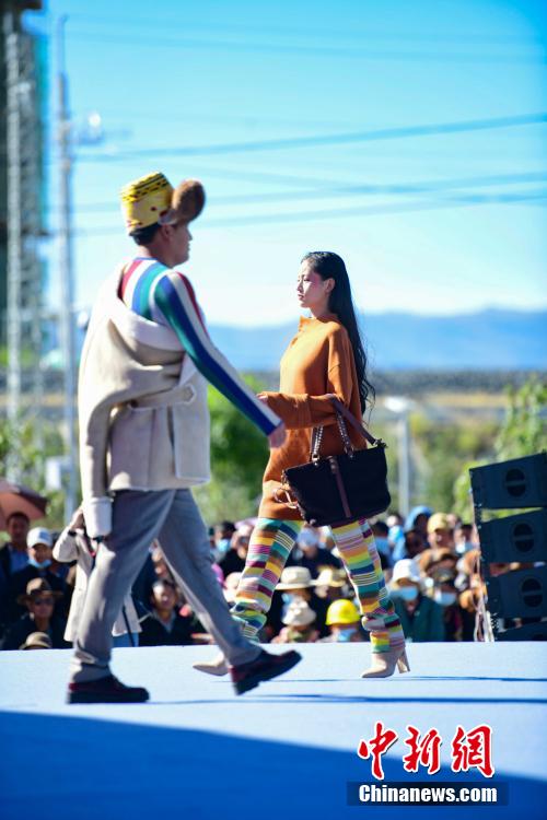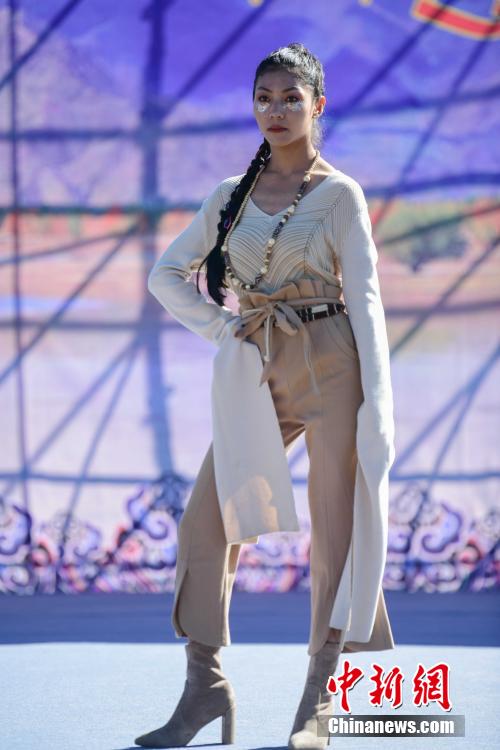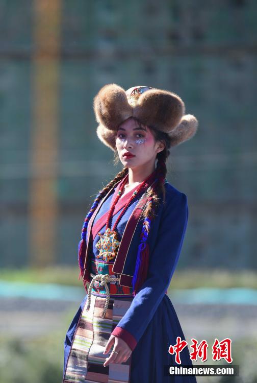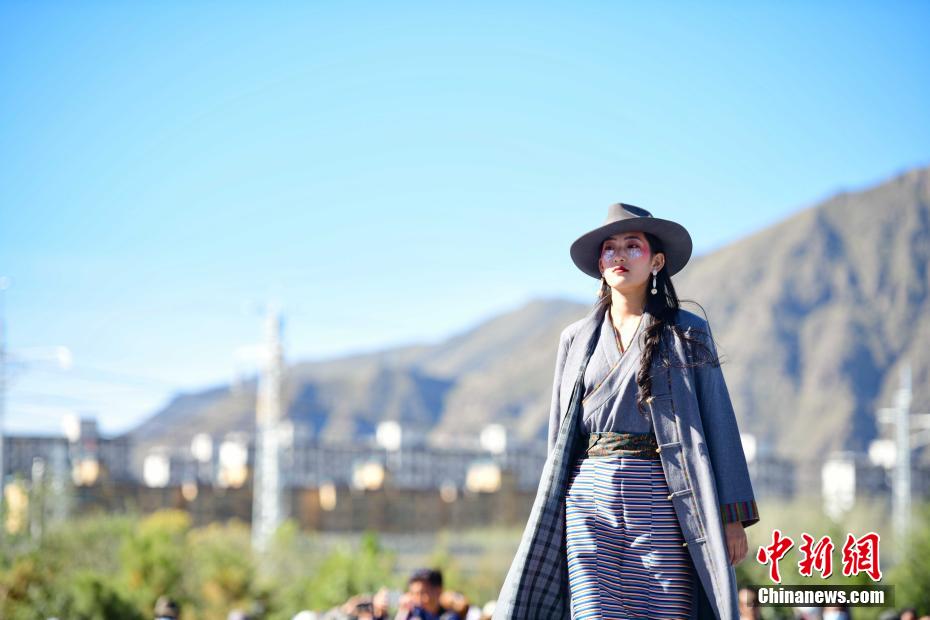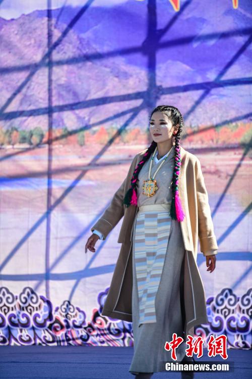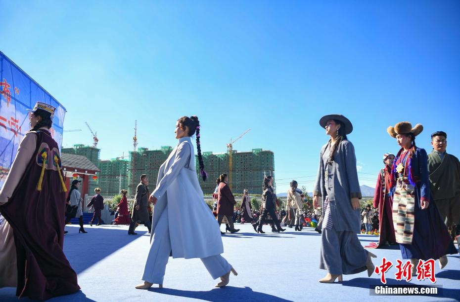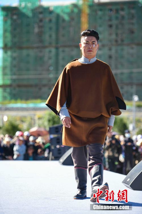 圖為當(dāng)?shù)夭刈迥L厣碇把鹏敳夭肌爆F(xiàn)代藏裝服飾進(jìn)行走秀。貢嘎來(lái)松 攝