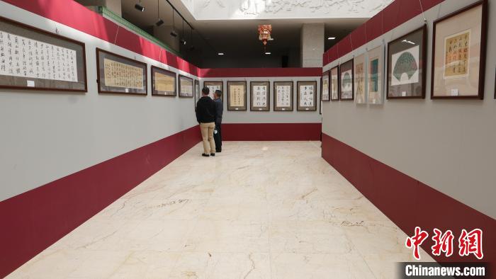 圖為市民在展廳內(nèi)觀看書法作品。 謝牧 攝