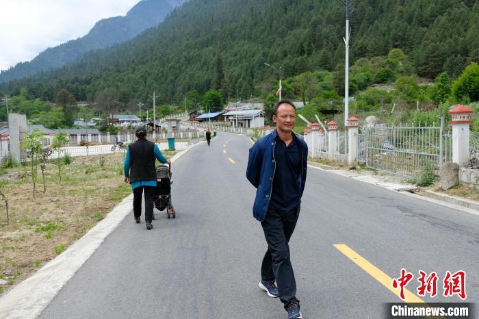 西藏林芝上察隅鎮(zhèn)布宗村村民達(dá)瓦次仁路過(guò)國(guó)道219線,該路段的修筑暢通為當(dāng)?shù)亟?jīng)濟(jì)帶來(lái)了積極改變?!〗w波 攝