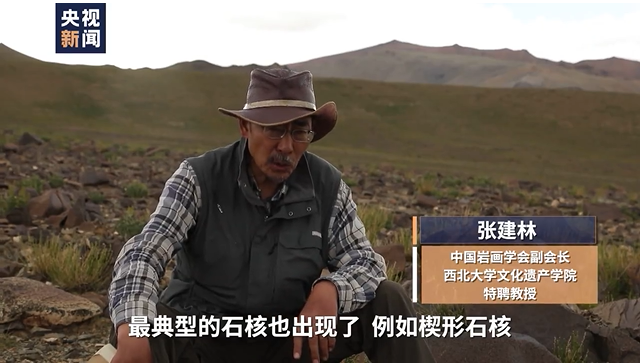 中國巖畫學(xué)會副會長、西北大學(xué)文化遺產(chǎn)學(xué)院特聘教授 張建林:最典型的石核也出現(xiàn)了,例如楔形石核。年代不好判斷,我們對現(xiàn)在藏北地區(qū)的細石器,現(xiàn)在還沒有這個年代上的框架,我們只是分布區(qū)域上,細石器地點發(fā)現(xiàn)得非常多,從那曲一直到阿里。