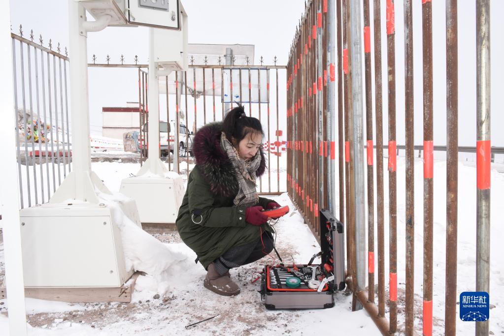 洛松拉姆在世界海拔最高有人值守氣象站——安多氣象局唐古拉山交通自動氣象站準備檢修設(shè)備(2019年1月28日攝)。新華社記者 周健偉 攝