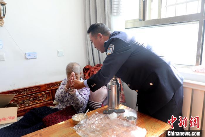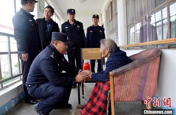 圖為敬老院老人向民警表達(dá)謝意。格熱 攝