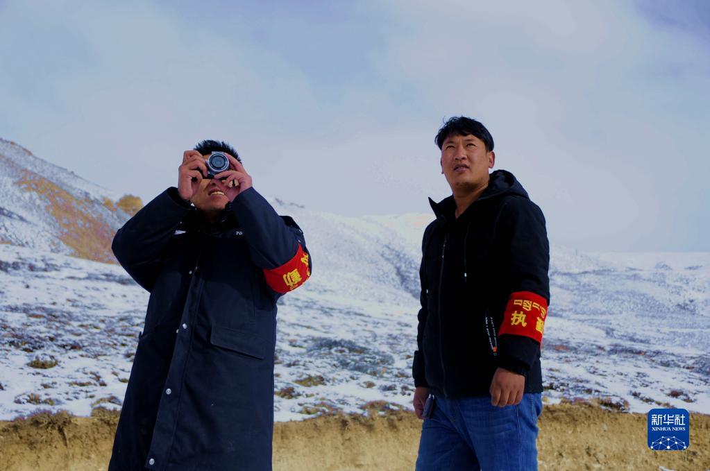 高原初冬,喜馬拉雅山脈的溝壑間又覆蓋了一層薄雪。歐珠多吉和巴卡村村民索朗益西發(fā)動皮卡車,再次前往型欽牧場執(zhí)勤點。他們身后,是每家每戶迎風招展的五星紅旗以及縈繞在空中的縷縷炊煙。